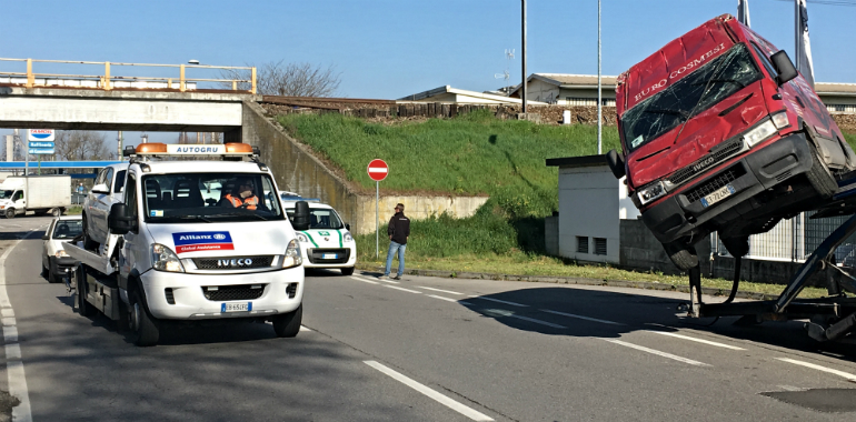 Caos questa mattina in tangenziale, intorno alle 9.30, quando una bisarca, trasportante diversi automessi, è rimasta incastrata proprio a causa del suo carico, sotto il ponte della ferrovia. La prima parte del camion si è infilata tranquillamente sotto il sovrappasso, ma la parte posteriore, particolarmente alta, su cui era trasportato un furgone della Eurocosmesi, è rimasta incastrata sotto il ponte. Il mezzo è poi riuscito ad uscire, danneggiando gravemente il carico. Anche la struttura in cemento armato, sebbene abbia retto il colpo, è rimasta danneggiata sul bordo. Toccherà poi ai tecnici comunali verificarne la condizione.