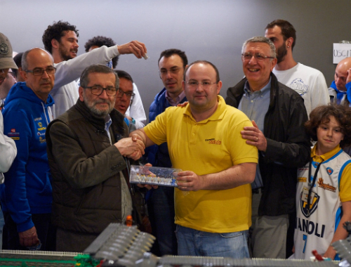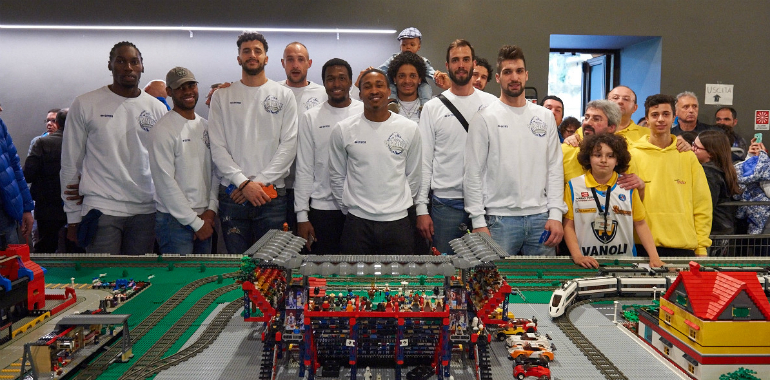 Ieri, a battezzare l’apertura, si è presentato lo staff tecnico e gli atleti della Vanoli basket, oltre al presidente Aldo Vanoli. In loro onore infatti è stata realizzata una versione in mattoncini del Palazzetto dello Sport, opera di Gianni Bassini e del figlio Giorgio. Grazie alla fantasia e alla bravura di Patrick Baroni, socio appassionato del Cremona Bricks, i giocatori della formazione cremonese hanno ricevuto in regalo la loro perfetta riproduzione in maglia Vanoli Cremona, griffata con il loro nome e il loro numero di maglia stampato.