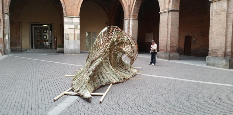 L’Onda generatrice, l’opera da cui prende il nome il progetto artistico e solidale itinerante che dalle 15 alle 19 di domenica animerà piazza del Comune, è stata trasportata a braccia e collocata nel cortile Federico II dai volontari che l’hanno realizzata. Domenica la struttura verrà spostata in piazza del Comune. Seguirà l’avvio dell’intreccio collettivo con coinvolgimento del pubblico e tessitura del secondo livello. Ci sarà in contemporanea una performance sonora, anch’essa intreccio tra culture musicali diverse.