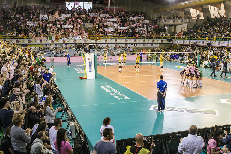 Dunque ora tocca alle rosa giocarsi il tutto per tutto, in un match dove qualsiasi cosa può succedere e in cui la Pomì deve davvero superare se stessa. Grandissimo il sostegno dei tifosi, che hanno letteralmente riempito gli spalti (4.858 gli spettatori), euforici dopo la vittoria di ieri. Il clima è allegro ma non privo di tensione. Tanto più che l’avversario è davvero di prim’ordine.