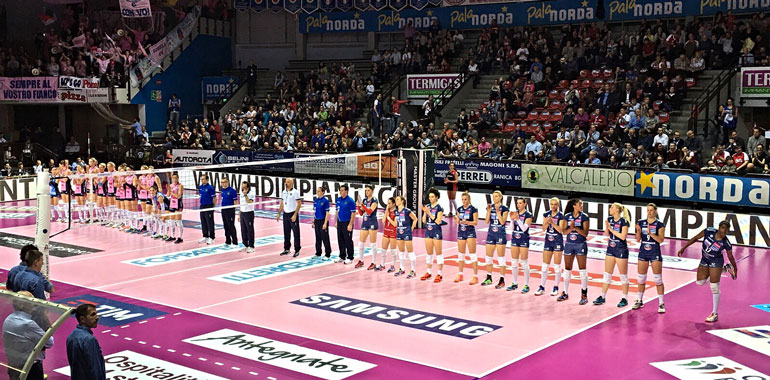 Si gioca al PalaNorda, palazzetto ristretto (2200 posti) ma che promette di essere molto caldo: i tifosi di casa hanno esposto uno striscione che recita “Foppa: 5 lettere, un amore, un lungo brivido in fondo al cuore”. Rispondono i tifosi di Casalmaggiore che espongono una riproduzione di carta della Champions League, lo striscione “Immensamente marziane” e sono presenti in un centinaio. Si gioca anche Scandicci-Piacenza, sempre gara-1: chi vince incrocia una tra Bergamo e Casalmaggiore in semifinale. Ricordiamo che martedì sera Conegliano ha vinto 3-0 a Montichiari e Modena ha sorpreso Novara col medesimo risultato nelle prime gare playoff.