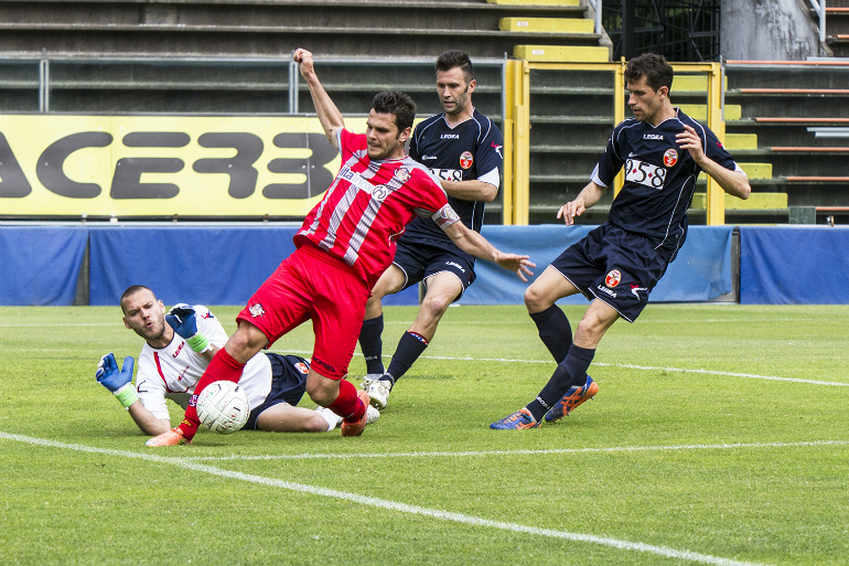 14′ Bianchi si inserisce in area e serve Brighenti da buona posizione. Il bomber grigiorosso sfiora il palo alla sinistra di Tunno. 23′ cross di Crialese dalla sinistra e Brighenti in acrobazia si rende pericoloso ma Tunno interviene. 32′ Diglio da fuori area, Ravaglia salva in corner. 33′ proteste grigiorosso per un fallo al limite di Conrotto su Brighenti ma l’arbitro lascia correre. Poco dopo ci prova Sansovini sul filo del fuorigioco con un pallonetto che scavalca Tunno, ma la palla esce di poco. Il primo tempo finisce 0 a 0.