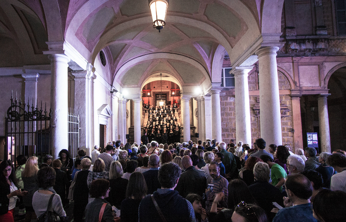 La cultura in notturna (e gratuita) si conferma come formidabile attrattore anche per questa edizione della Notte dei Musei. I cremonesi riscoprono le sale della Pinacoteca, curiosano tra i pezzi di liuteria storici e contemporanei del Museo del Violino, si aggirano da un locale all’altro. Nel cortile del Museo civico, grande curiosità ha suscitato il concerto del performer Paolo Schianchi, in grado di padroneggiare tutte le principali varietà della chitarra, dal liuto rinascimentale a strumenti futuristici di sua creazione. Tra questi una chitarra a 49 corde del liutaio cremonese di origini argentine Carlos Roberto Michelutti, e Octopus, uno strumento elettro-acustico inventato dallo stesso Paolo Schianchi e brevettato, con il quale è possibile suonare dal vivo diverse chitarre contemporaneamente utilizzando mani e piedi insieme.
