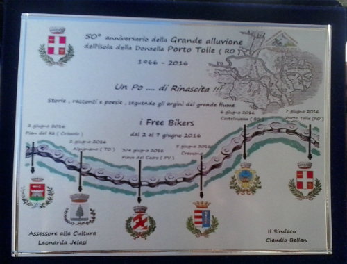 Un viaggio fortemente voluto dall’amministrazione comunale del paese veneto, per stringere relazioni culturali tra le genti del Po di Piemonte e Lombardia: di ieri ad esempio l’ufficializzazione del patto di amicizia con Pieve del Cairo. Particolarmente interessata alla valorizzazione dei percorsi di mobilità lenta, l’assessore Manfredini, che ha parlato dell’impegno del Comune nello stringere alleanze con tutte le città di fiume (in primis Piacenza) in un’ottica di Area Vasta. Non poteva mancare l’auspicio dei quattro ciclisti ad una rapida realizzazione della ciclovia “Vento” progettato dal Politecnico di Milano e presentato proprio a Cremona un anno fa alla presenza del Ministro Delrio che ne confermò l’inserimento tra i progetti finanziabili. Il mondo delle due ruote attende ora la concretizzazione del progetto. La ciclovia dovrà però essere all’altezza dei grandi itinerari del nord Europa, dove anche i bambini possono percorrere grandi distanze sulle due ruote in sicurezza e segnaletica e servizi sono di prim’ordine.