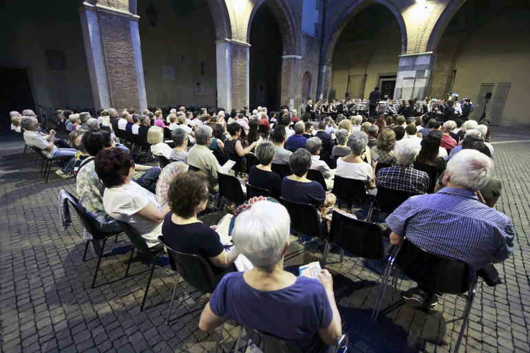 La serata è poi proseguita sotto il Cortile Federico II, dove la Banda di Cremona ha salutato il proprio pubblico in vista della pausa estiva, con un programma accattivante che ha voluto omaggiare in particolar modo le prossime Olimpiadi di Rio.
