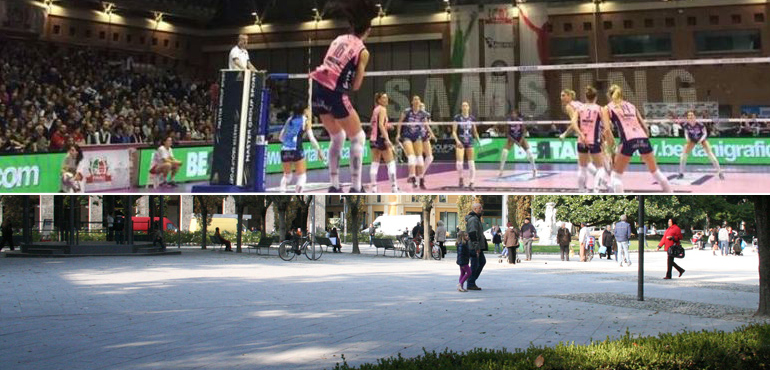 La Pomì in scena su un campo da beach volley in piazza Roma