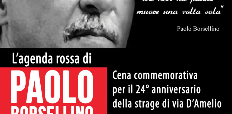Per il 24° anniversario della strage di Via D’Amelio (che ha provocato la morte del giudice Paolo Borsellino), il Coordinamento Provinciale Libera Cremona e la Cooperativa Nonsolonoi organizzano una cena commemorativa con un contributo del Movimento delle Agende Rosse. Appuntamento dunque alla Locanda Al Carrobbio (Via Castelverde, 54) martedì 29 luglio.