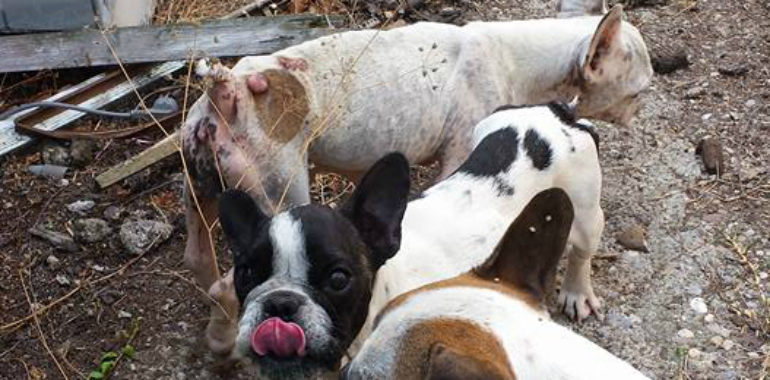 Secondo quanto ricostruito, nel giardino vi erano tre Bulldog francesi “in condizioni terribili in un mare di erbacce, ortiche, topi ed escrementi. Da una finestrina a fianco al cancello proveniva una puzza tremenda: all’interno vi erano altri due cani marroni, presumibilmente anch’essi Bulldog francesi, confusi in un tappeto di cacca”.