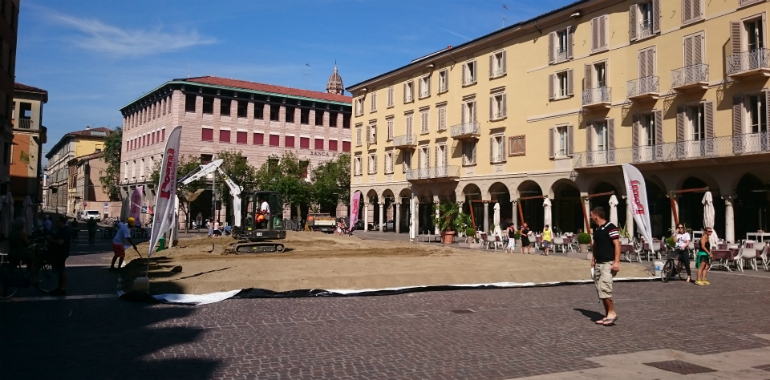 Beach volley in piazza con la Pomì, campo già in fase di allestimento