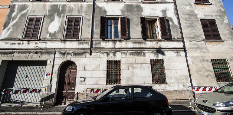 Cadono tegole da una casa in via Bissolati, intervento vigili del fuoco e transenne
