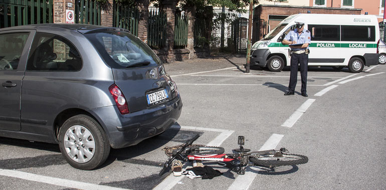 AGGIORNAMENTO - Rintracciato dalla Municipale l'automobilista che in via Bergamo ha investito un ciclista dopo una lite. Revocata la patente, perchè si è presentato al comando con tasso alcolico nettamente superiore al consentito. Denunciato per lesioni stradali e omissione di soccorso.