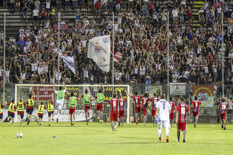Tante le novità in casa grigiorossa, a partire dall’esordio di Moro, arrivato in settimana. Restano in panchina Gemiti e Belingheri, al loro posto Procopio e Perrulli. Al 5′ Perrulli ruba palla a centrocampo e innesca Brighenti che viene atterrato al limite dell’area da Vannucci, che rimedia il giallo. Tira Salviato un potente rasoterra che sfiora il palo.