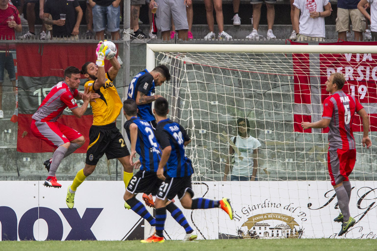 Una Cremonese vivace, che fa la partita e strappa applausi. Una Cremonese che fa divertire grazie ad un centrocampo di qualità che serve palloni deliziosi alle punte. Brighenti vince un rimpallo e infila la porta con un diagonale preciso che porta in vantaggio la Cremonese. Il Renate risponde al 18′ con un colpo di testa di Marzeglia servito da Anghileri, ma la palla supera la traversa. Al 21′ Scappini vicino al raddoppio ma il suo tiro viene deviato in corner. Al 23′ pareggia il Renate con Marzeglia sugli sviluppi di una punizione battuta da Napoli. La Cremonese cerca di reagire e ci prova con Moro, ma Cincilla è attento e parà a terra. Al 30′ ancora Marzeglia ci prova di testa, Ravaglia c’è. Sul rovesciamento di fronte Cremonese di nuovo in vantaggio, Moro serve Simone Pesce che calcia al volo e trova il sette. Il Renate risponde con Scaccabarozzi che dal limite sfiora lo specchio della porta. Cremonese che sfiora il terzo gol in un paio di occasioni, ma che subisce, sugli sviluppi di una punizione calciata da Perrulli, un pericoloso contropiede al termine del quale Napoli trova il pareggio. Nel finale c’è ancora tempo per una punizione battuta da Napoli al limite dell’area che si spegne sulla barriera. Il primo tempo finisce 2 a 2.