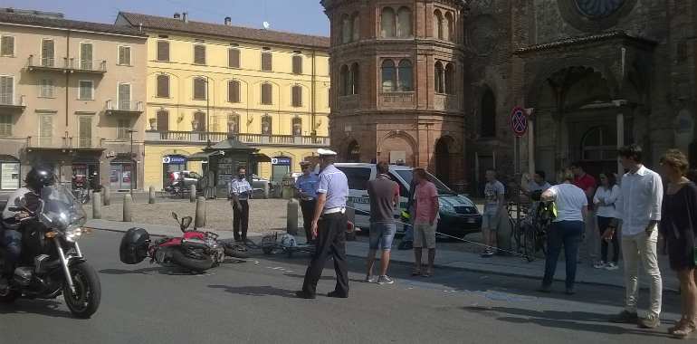 AGGIORNAMENTO – Incidente sulla cui dinamica sta facendo luce la Polizia Locale, questa mattina alle 11,30 in corso Garibaldi, di fronte al sagrato di san Luca. Una motocicletta e una bicicletta sono entrate in collisione, provocando il ferimento di quattro persone, trasportate in ospedale con ferite leggere: due donne di 29 e 56 anni; 2 bambini di 6 e 8 anni. Gli agenti dell’infortunistica del comando di piazza Libertà hanno raccolto sul posto le testimonianze per capire l’accaduto. Un terzo veicolo potrebbe essere coinvolto.
