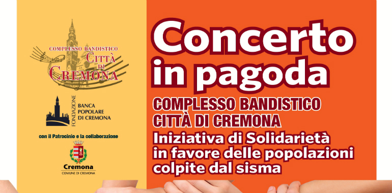 Il Complesso Bandistico “Città di Cremona” riprende la propria attività, dopo la pausa estiva, proponendosi al suo pubblico nel tradizionale appuntamento settembrino presso la pagoda dei Giardini Pubblici di piazza Roma (in caso di maltempo presso l’Auditorium della Camera di Commercio in via Baldesio n. 10) domenica 18 settembre alle 17.30. Un evento che quest’anno assume un significato particolare. Il sisma che lo scorso 24 agosto ha così duramente colpito le popolazioni del Centro Italia ha infatti spinto il Complesso Bandistico “Città di Cremona” alla determinazione di mettere in campo iniziative per raccogliere fondi da destinare ad uno dei centri colpiti.