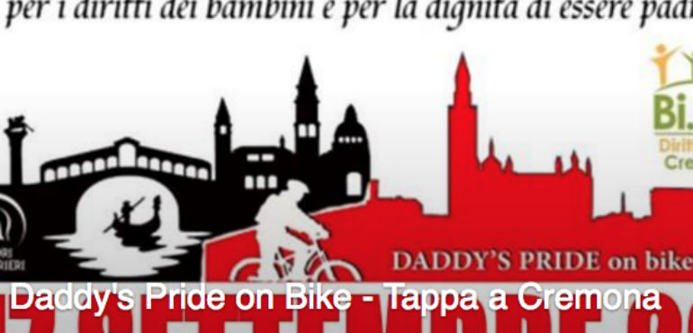 Passerà anche da Cremona il ‘Daddy’s Pride on bike’, l’evento itinerante a favore della bigenitorialità ideato da Gabriele Fabris, papà separato di Chioggia. Il momento clou dell’evento si terrà a Strasburgo, al fine di far emergere nel nostro paese le problematiche gestionali dei figli conseguenti alle dinamiche di genitorialità fragile, separazione e divorzi. A Cremona l’appuntamento – promosso dall’Associazione Bi. Genitori Diritti dei Minori – è presso Spazio Comune sabato 17 settembre (ore 17), alla presenza dell’assessore comunale Welfare di Comunità Mauro Platè, ai consiglieri comunali Alessandro Fanti e Paolo Carletti.