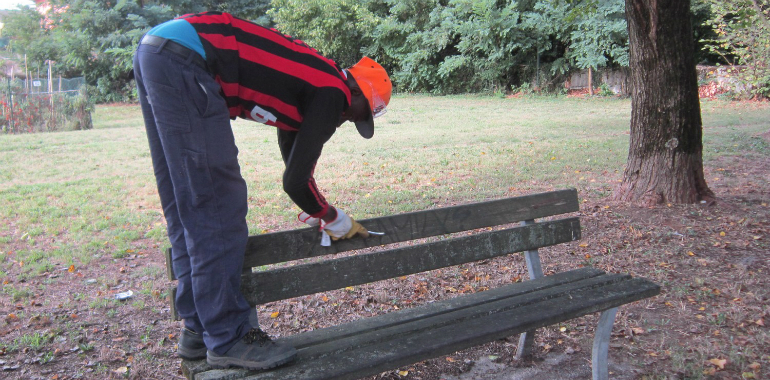 Dopo gli interventi in piazza Roma, al parco del Vecchio Passeggio, e in lungo Po Europa, sono in corso in questi giorni i lavori di sistemazione delle panchine nell’anello verde allo Zaist (via Caprera). Complessivamente le panchine sono 49 panche, di cui 8 sono saranno sostituite da nuove, le restanti 41 panche sono quelle sulle quali si sta intervenendo con la sostituzione delle stecche rotte e con la riveniciatura.