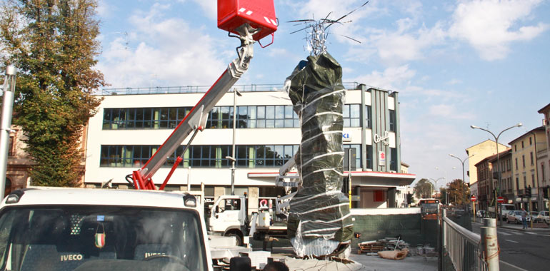 Arrivato alla stazione il grande violino in acciaio progettato dall’architetto Giorgio Palù e realizzato dalla ditta Steel Color di Pescarolo, creazione artistica denominata “L’anima della città”. L’opera è giunta nel piazzale nella mattinata di mercoledì, attorno alle 10,30. Tecnici e operai si sono messi al lavoro per la posa della struttura in acciaio. Un lavoro di un paio d’ore. Il violino verrà svelato alla città sabato, quando ci sarà la presentazione ufficiale.