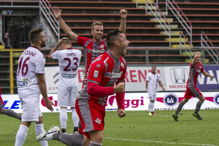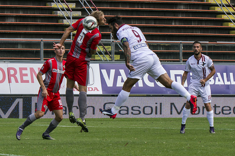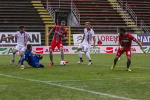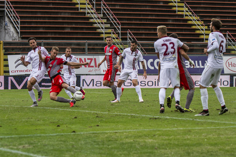Dopo qualche minuto di difficoltà la Cremonese si ricompone e trova la forza di reagire. Al 25′ arriva la fiammata di Pesce che da fuori area impegna il portiere Benassi. Al 27′ è Belingheri che di testa gira a rete un cross di Gemiti, ma Benassi è pronto e devia il pallone. Al 31′ ci prova anche Brighenti con un bel diagonale che viene rimpallato dalla difesa. Al 37′ ancora Belingheri che servito da Brighenti calcia dal limite, ma Benassi para.