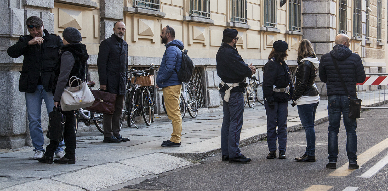 Nessun presidio e nessuna tensione, oggi in tribunale, dove si è aperta l’udienza preliminare davanti al giudice Letizia Platè per 18 imputati, 8 del centro sociale Dordoni e 10 di CasaPound, tutti accusati di rissa aggravata, due anche di tentato omicidio e tre di lesioni gravi. In tribunale si sono presentati solo gli imputati. Nessun presidio di sostenitori, nessuno striscione. Per evitare possibili provocazioni, i militanti di CasaPound sono stati fatti entrare dall’ingresso di via Jacini, mentre gli avversari, accompagnati chi dalle moglie, chi dalle mamme, dall’altro ingresso di via dei Tribunali. I due gruppi antagonisti si sono trovati faccia a faccia solo in aula. Palazzo di giustizia, chiuso al transito dal lato di via dei Tribunali, era blindato di forze dell’ordine sia fuori che dentro.