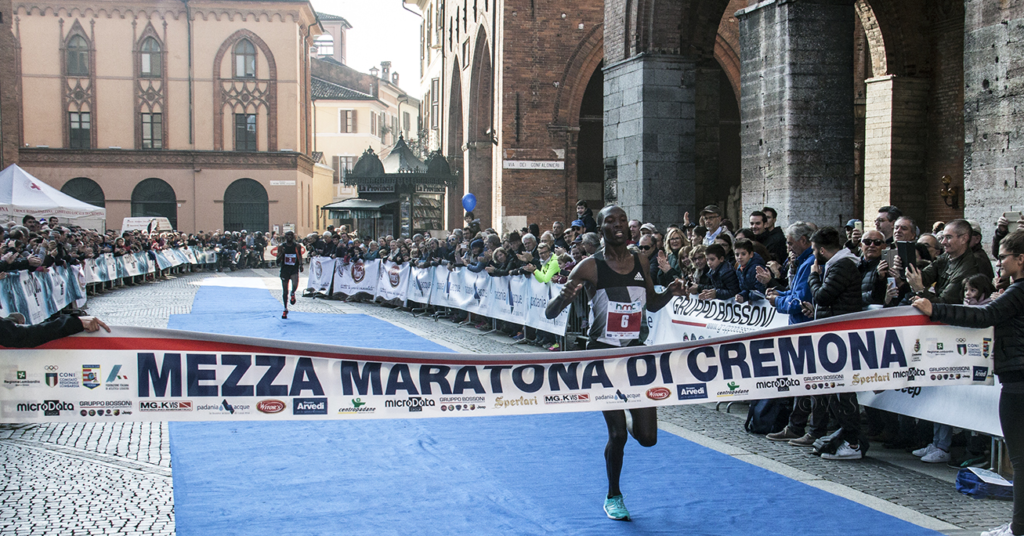AGGIORNAMENTO – Per i 2500 partecipanti della 15° Halfmarathon di Cremona la mente corre non alle classiche “Tre T” cremonesi, ma ad altre tre lettere, HMC, ovvero Half Marathon Cremona, andata in scena stamane nel centro cittadino e sulle aree naturali del Po e Morbasco. Organizzata impeccabilmente dal Cremona Runners Club presieduto da Michel Solzi questa straordinaria “festa del podismo amatoriale ed agonistico” ha sempre visto sfilare i più grandi atleti del fondo e del mezzofondo. Ed è in continua crescita sia in termini di quantità che di qualità dei partenti. Anche quest’anno formula e squadra operative non sono cambiate; sono state però introdotte significative novità quali il rinnovato percorso, ritenuto più spettacolare e positivo. e le staffette che hanno riscosso particolari apprezzamenti tra i concorrenti. Il Torrazzo, all’arrivo, i vari palazzi e chiese durante il percorso. ed il Teatro Ponchielli alla partenza: sono stati i monumenti a vigilare gli sviluppi della gara. Gara cha rispettato pienamente le premesse della vigilia: è stata largamente dominata dagli atleti del Kenia che hanno letteralmente fatto il vuoto alle lo spalle. I primi sei posti sono stati di loro proprietà. Al termine dei 21 chilometri ha tagliato per primo il traguardo Victor Chumo, classe 1987, già protagonista alla maratona di Trento, secondo Joash Kipruto Koech (atletica Potenza), terzo Rogers Maiyo , quarto Paul Tiongik già ammirato recentemente proprio a Cremona, Paul Kariuki Mwangi (1993) arrivato a Cremona con un personale sulla mezza maratona di 1h01’31”, Hosea Kisorio Kimeli (1985) un veterano della maratonina con le sue 4 presenze, ma senza mai centrare la vittoria. Primo dei cremonesi l’inossidabile Mauro Cattaneo giunto 25°. Fra le donne straordinaria affermazione di Emma Quaglia, campionessa europea a squadre a Zurigo nel 2014, alla sua terza apparizione a Cremona, con due vittorie all’attivo. Alle sue spalle la favorita keniana Pauline Eapan (1995) lo scorso mese ha vinto la Maratonina di Udine in 1h12’52 suo record personale. Terza Deborah Toniolo (1977) alla sua quinta presenza alla nostra mezza maratonina, 2a classificata nel 2004, 3a nel 2010. La svolta della corsa è avvenuta a 5 km dalla fine con un allungo decisivo dell’italiana. Grande presenza di pubblico sia all’arrivo che alla partenza.