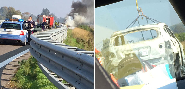 Il primo pensiero ovviamente è andato ai bambini, un maschietto e una bimba ancora nella culla. Dopo essersi fermati sulla corsia di emergenza, i genitori li hanno immediatamente staccati dalle cinture facendoli uscire dall’abitacolo e allontanandosi poi a loro volta il più in fretta possibile. Nel frattempo alcuni automobilisti, attirati da tutto quel fumo grigio e dalle fiamme altissime, si sono bloccati intervenendo con gli estintori che qualcuno aveva con sé. Non c’è stato nulla da fare: in pochi istanti la Quashqai che aveva due anni e mezzo di vita ed era alimentata a gasolio, è andata completamente distrutta ridotta ad una scatola di lamiera contorta.