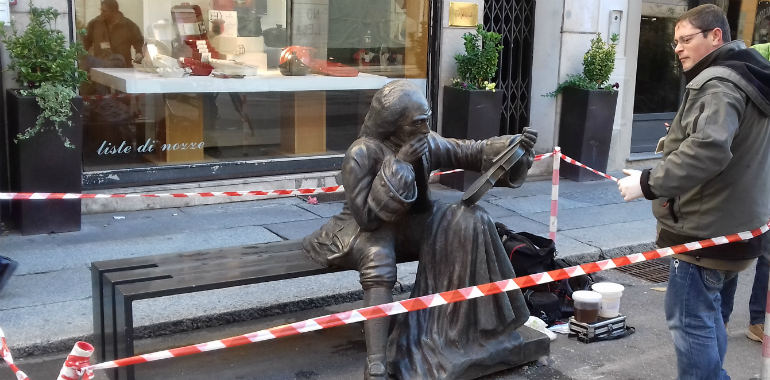 AGGIORNAMENTO - Questa volta i vandali, i deturpatori e gli incivili che hanno nuovamente rotto il ricciolo del violino della statua di Stradivari potrebbero presto avere un volto e un nome.