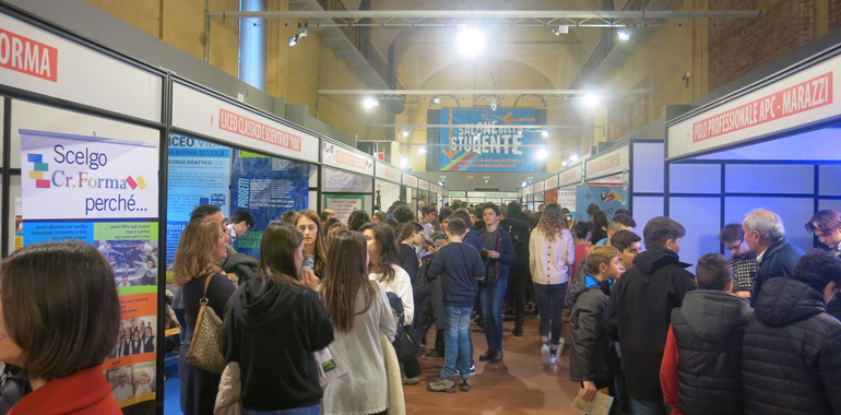 Visita all’area espositiva, ma anche incontri e laboratori di vario tipo. E’ l’intenso programma della seconda giornata del Salone dello Studente Junior 2016 che ha visto protagonisti 450 ragazzi delle classi delle scuole secondarie di primo grado di Cremona (Beata Vergine, Campi, Virgilio, Vida, Anna Frank, Sacra Famiglia), della provincia (Casalmorano, Pizzighettone, Pieve San Giacomo, Levata) e di fuori provincia (Castelvetro Piacentino, Villanova, Rivarolo Mantovano). Tra i laboratori spicca naturalmente quello interattivo dedicato all’orientamento denominato “Rimandare mai più”, curato dall’Informagiovani del Comune di Cremona e condotto dalla psicologa Marta Benazzi, nel quale i ragazzi sono stati stimolati a riflettere sulle proprie esperienze e a trovare strategie efficaci per ottimizzare i tempi dello studio ed organizzare in modo funzionale le proprie attività. Un momento di confronto apprezzato da tutti i partecipanti. “Se impariamo a decidere, saremo pronti a scegliere”, laboratorio curato dalla Provincia di Cremona e condotto da Paola Feriancich ed Emanuela Rinaldi, ha invitato gli studenti a riflettere sul tema della scelta attraverso la condivisione dei significati e degli atteggiamenti nei confronti del futuro.