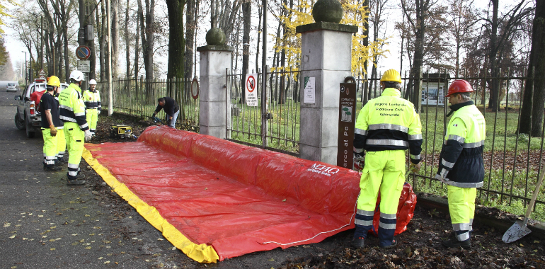 Il livello del fiume Po è ancora molto lontano dalla soglia massima di attenzione (2,20 metri, il livello più basso in quanto a pericolosità), questa mattina alle 11, all’idrometro di Cremona che segnava 1,37. Sono comunque continuate per tutta la mattinata le operazioni della protezione civile per mettere il più possibile in sicurezza le strutture. Alle Colonie Padane collocate le barriere galleggianti in corrispondenza delle cancellate d’ingresso: il livello dell’acqua non dovrebbe arrivare oltre il muretto di cinta dell’area.