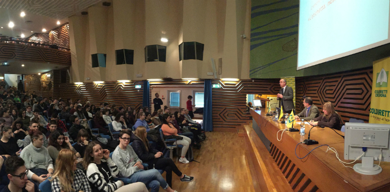 Stamattina la sala Maffei della Camera di Commercio di Cremona era gremita di studenti, per la lectio magistralis proposta da Coldiretti in collaborazione con l’Istituto d’istruzione superiore Luigi Einaudi (che ha partecipato con 220 studenti, con tutto il triennio dell’indirizzo enogastronomico, cui si sono unite alcune classi dell’Enaip). In cattedra c’era il dott. Lorenzo Bazzana, dell’Area economica di Coldiretti Nazionale, che ha accompagnato i ragazzi in un viaggio teso a mostrare come si leggono le etichette, quale preziosa fonte di informazione possono essere, e nel contempo ha messo in guardia dai tanti ‘inganni’ che – dietro l’immagine positiva del Made in Italy – possono celare la vendita di prodotti nati ben lontano dalle campagne italiane. Da qui, le ragioni della battaglia messa in campo dalla Coldiretti per ottenere l’indicazione obbligatoria dell’origine per tutti gli alimenti.