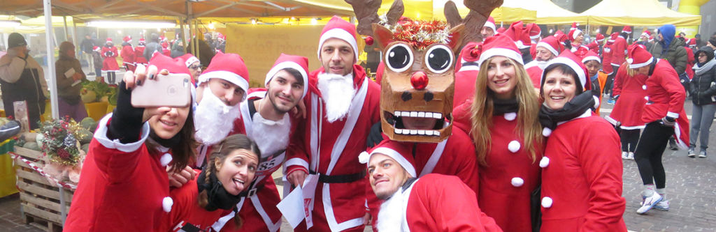 Una manifestazione non competitiva snodata su 5 o 10 chilometri attraverso le vie della città. Invasione di Babbi Natale con le scarpe da ginnastica. Uomini donne, famiglie con bambini, giovani e meno giovani. Un’ondata di colore rosso e barbe bianche. Tanti sorrisi.