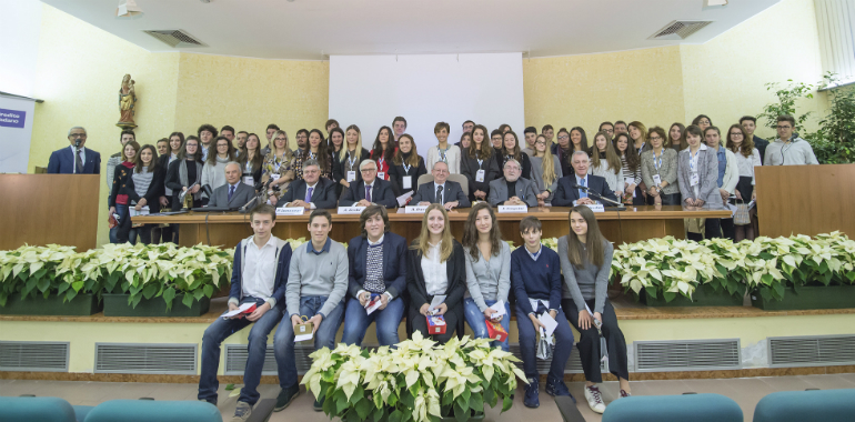 Si è svolta domenica mattina la tradizionale cerimonia di consegna delle Borse di Studio offerte da Credito Padano ai figli dei propri soci e dei dipendenti che si sono distinti per meriti scolastici al termine dei rispettivi cicli di studio. Anche per effetto della recente fusione tra Banca Cremonese e Banca di Credito Cooperativo di Castel Goffredo, la cerimonia di quest’anno è stata particolarmente partecipata presso la sala del Centro Diocesano Pastorale. Sessantaquattro ragazzi hanno ricevuto dalle mani del Presidente Antonio Davò, dei Vice Presidenti Elia Gorgaini ed Andrea Zerbi e del Direttore Generale Paolo Innocenti un riconoscimento all’impegno ed alla dedizione che hanno dimostrato durante gli studi.
