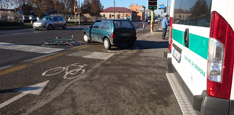 Investimento in via Milano, ciclista urtato su pista da auto in uscita area servizio