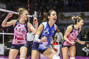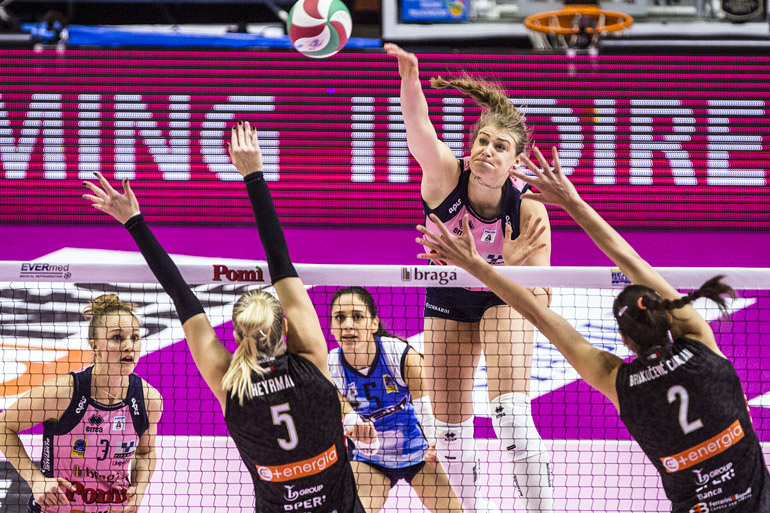 CASALMAGGIORE – 1 Bacchi, 3 Lloyd, 4 Peric, 5 Sirressi, 6 Turlea, 8 Gibbemeyer, 9 Bosetti, 10 Gibertini, 12 Guerra, 13 Fabris, 15 Stevanovic, 16 Tirozzi, 18 Susic.