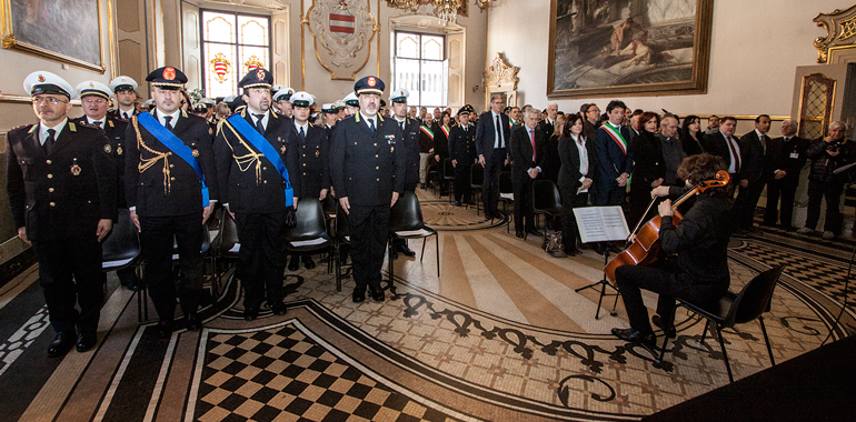 Sala della Consulta gremita venerdì mattina per la presenza di autorità regionali e locali e semplici agenti in occasione di San Sebastiano, patrono dei vigili, e della Giornata della Polizia locale della regione Lombardia. E’ stata infatti Cremona a ospitare l’evento quest’anno, nel corso del quale è stato premiato il corpo cremonese per il servizio prestato durante la manifestazione dei centri sociali del 24 gennaio 2015, sfociata in episodi di violenza e nell’assalto al comando dei vigili.