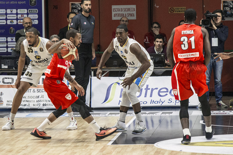 La Vanoli Cremona è uscita a testa alta dal Palacarrara di Pistoia dove è stata battuta dalla The Flexx per 64-59. Partita agonisticamente combattuta, intensa che ha visto gli ospiti comandare sino appena dopo l’intervallo. Purtroppo quando la fatica si è fatta sentire, nel finale di disputa è mancata la necessaria lucidità. Con abnegazione difensiva e concretezza in attacco la Vanoli Cremona chiarisce subito le sue intenzioni e conduce 11-6 al 4’. Pistoia è chiaramente in difficoltà nella definizione degli schemi offensivi : effettua tiri forzati ed il solo Boothe trova la via del canestro. Una “bomba” dalla lunghissima distanza di Turner fissa il punteggio 19-8 per i biancoblu. Coach Esposito indica ai suoi di aprire la retroguardia avversaria ma Cremona non si disunisce. Con Biligha ed Harris in evidenza, è avanti 19-9 al 10’. Moore centra la “tripla” e la The Flexx corre di più in attacco. Antonutti con una realizzazione per il 14-21 scalda i tifosi toscani. E’ sempre Biligha ad inserirsi sotto canestro e con una perentoria realizzazione distacca la Vanoli a più 11, 14-25. Pistoia commette errori in avanti e Cremona ha saldamente in pugno il controllo della situazione. 17-30 il parziale prima del 24-32 dell’intervallo . I padroni di casa, che non concedono più “seconde opportunità” di far canestro agli avversari dopo tiri sbagliati, impostano la partita sulla velocità e sfruttano i ribaltamenti d’azione. Si sblocca Roberts e Pistoia capovolge il punteggio 36-33 al 24’. Petteway con un tiro da distanza impossibile infiamma il PalaCarrara, Crosariol centra un tap-in con fallo ma Turner replica ed al 30’ è parità 44-44. Cremona non ha saputo sfruttare un periodo critico delle guardie locali per allungare ulteriormente il distacco tra l’11’ ed il 13’ e Pistoia si è rimessa in carreggiata. The Flexx ha lo sprazzo vincente con una doppietta di Petteway che infila due “bombe” consecutive per il 52-46. Si blocca l’attacco cremonese che perde lucidità. Moore difende bene su Holloyay e Pistoia allunga a più 10. Cremona con pazienza e determinazione recupera e ad 1’30” dalla fine è solo a meno uno ma un’azione da tre punti di Crosariol si rivela vincente. Per la Vanoli Cremona 15 punti di Harris e 13 Biligha. Miglior marcatore del match il pistoiese Boothe con 19 punti.