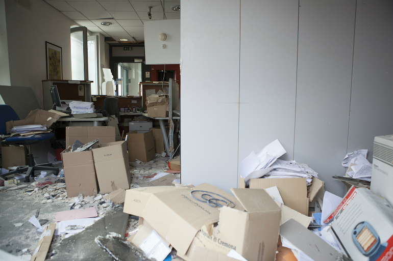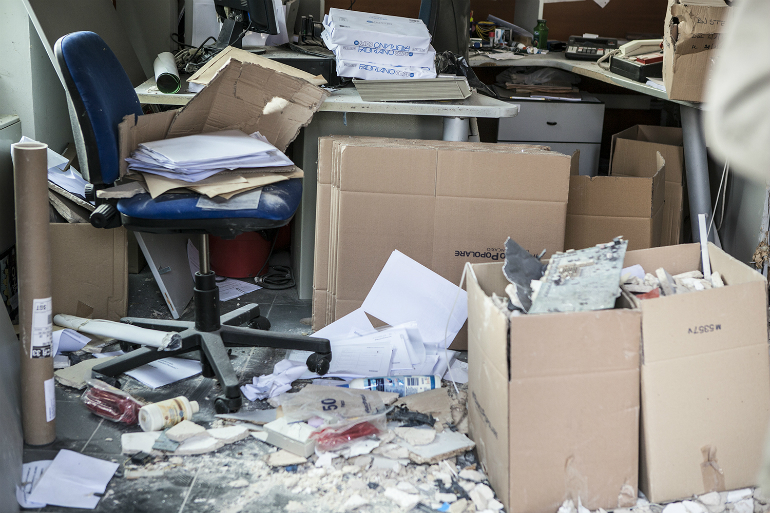 Intanto si fa la conta dei danni: l’esplosione ha avuto ripercussioni notevoli anche all’interno della filiale, dove gli uffici sono rimasti gravemente danneggiati: scrivanie, computer e armadi sono stati distrutti e si deve pensare a richiudere il buco creatosi nel muro.