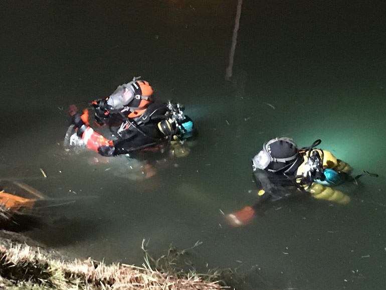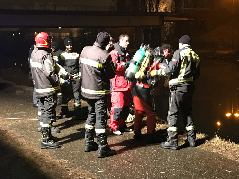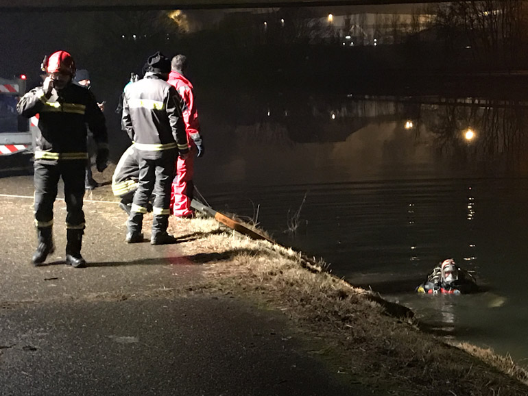 Sul posto anche la polizia, che sta svolgendo le indagini del caso: dal risalire al proprietario della macchina al capire per quale motivo essa sia finita nel canale.