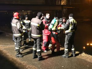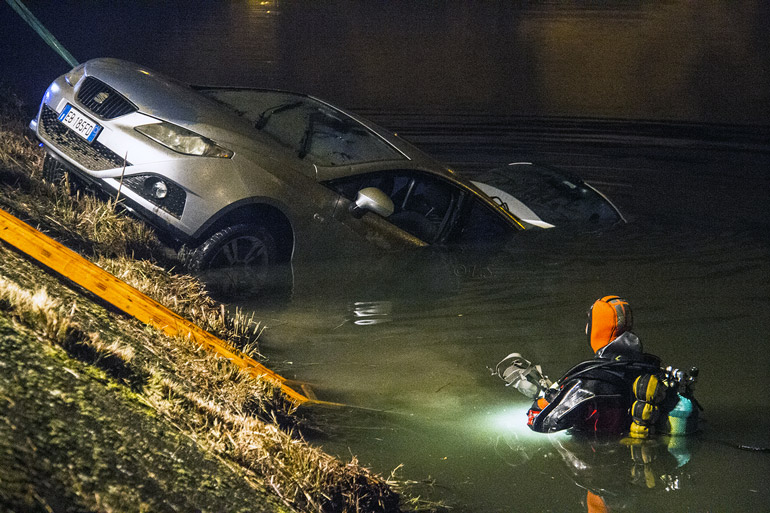 La vettura, una Seat Bianca, era stata avvistata nel tardo pomeriggio da alcuni ragazzi che stavano praticando canottaggio. Una delle imbarcazioni dei giovani ha infatti impattato contro l’automezzo, proprio mentre stava affondando. Sono stati proprio i canoisti ad allertare immediatamente i soccorsi.