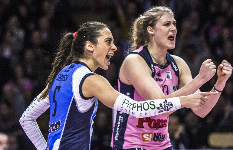CASALMAGGIORE – 1 Bacchi, 2 Zuleta, 3 Lloyd, 4 Peric, 5 Sirressi, 6 Turlea, 8 Gibbemeyer, 9 Bosetti, 10 Gibertini, 12 Guerra, 13 Fabris, 15 Stevanovic, 16 Tirozzi.