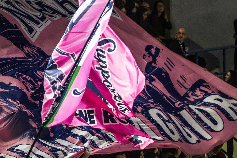 Anche il tifo rosa è quello delle grandi occasioni, per una delle partite più importanti del campionato: per questo i gruppi di tifosi No Vbc No Party e Passione Rosa hanno preparato una coreografia molto particolare e suggestiva, con uno striscione grande come tutta la tribuna.
