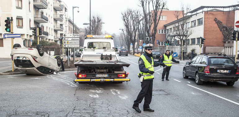 V.le Trento Trieste, 3 schianti in 10 minuti, auto ribaltata all'altezza di via Palestro