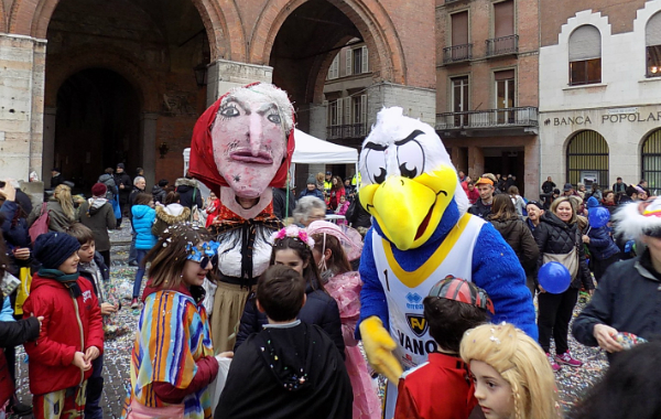 A Carnevale la diversità si annulla e anche quest’anno la festa in piazza del Comune, nel pomeriggio di martedì grasso, ha radunato tantissima gente, soprattutto bambini ma non solo. Niente allestimenti spettacolari, ma il tradizionale raduno di maschere, organizzato dal Comune e da Anffas Cremona, Fondazione Sospiro, Caritas Diocesana, Protezione Civile Eridanus, Cooperativa Nazareth Drum Bun, Volontari del Servizio Civile, Km Spa e Padania Acque. Ad allietare di note il pomeriggio, ci ha pensato la Banda Città di Cremona, che quest’anno ha schierato anche i giovanissimi allievi. In mezzo alla folla, anche alcuni assessori della giunta Galimberti, mentre a ritmare il pomeriggio dal palco è stato il brio di Eleonora Busi e Michelangelo Gazzoni. A conclusione della festa, tradizionali pallonate contro la ‘vecia’, accompagnata dalla mascotte della Vanoli Basket, Fred il Falco. All’insegna della musica e della multiculturalità, in piazza si è esibito anche il gruppo di percussioni Oghene Damba Cremona, formato da alcuni ospiti della Casa dell’Accoglienza. La festa si è conclusa con la distribuzione dei tipici dolci di carnevale molto graditi da adulti e bambini.