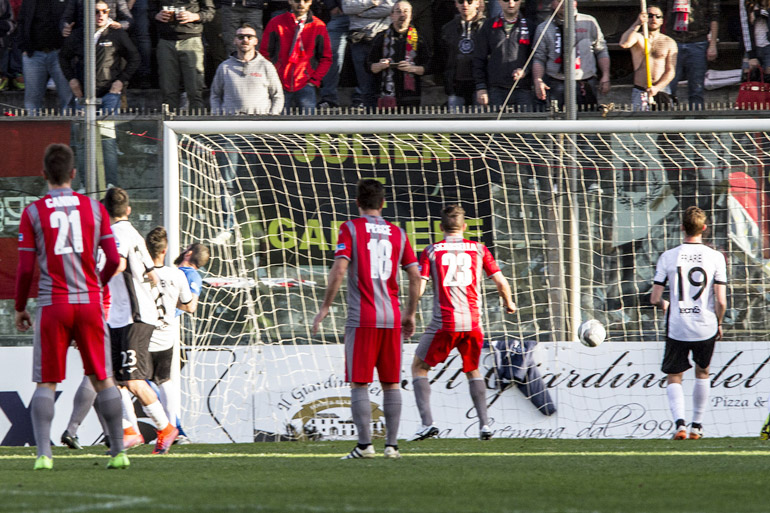 Al 13′ però sono i toscani ad andare in vantaggio con un gran tiro di Merkaj. Al 21′ esce per infortunio Stefano Lucchini, una brutta tegola per il difensore che lascia il campo in lacrime, al suo posto Canini. La Cremonese fatica a trovare gli spazi per pareggiare i conti. Al 36′ arriva un’occasione sui piedi di Maiorino ma Nocchi para a terra. Al 40′ Scarsella viene atterrato sulla trequarti, punizione ghiotta per la Cremonese. Batte Maiorino sulla barriera, Ferretti si avventa sul pallone e pareggia i conti. Il primo tempo termina 1-1