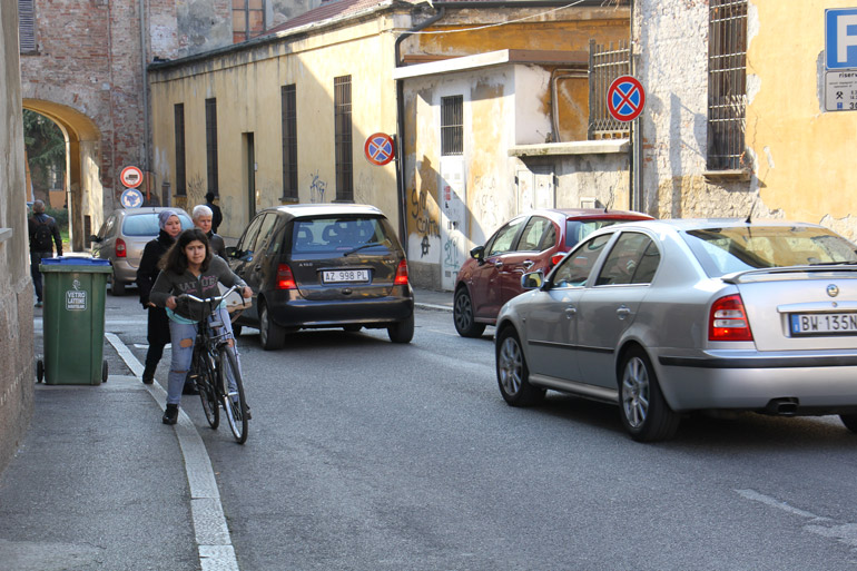 Anche i camion costituiscono un problema: “A volte faticano a passare, tanto che la casa d’angolo è piena dei segni fatti dagli automezzi pesanti che hanno urtato il muro transitando” continua Vezzoni. “Chi abita in quella casa non ne può più. E in tutta la via ci sono continui rimbombi, provocati dal passaggio dei mezzi pesanti sull’acciotolato”. Sulla questione era intervenuto anche il Comitato di Quartiere, che aveva predisposto e inviato al Comune un documento con una serie di richieste. “Tutto però è rimasto inascoltato. Avevamo anche chiesto di bloccare l’accesso da corso Matteotti dalle 19 alle 9, ma anche in questo caso non abbiamo ottenuto nulla: le istituzioni su questo tema sono completamente assenti”.