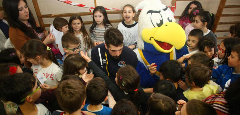 Terzo appuntamento per la Vanoli Basket Cremona alla scuola primaria Capra Plasio: il capitano biancoblu Fabio Mian e la mascotte Fred il Falco, accompagnati dal general manager Andrea Conti, dalla responsabile dei progetti scuola Grazia Piccinelli e dall’allenatore delle giovanili e istruttore minibasket Marco Bonetti hanno incontrato i ragazzi della classi prime e seconde. Per Mian le domande dei piccoli studenti sulla sua carriera e sulla sua vita da atleta, prima di dedicarsi alla parte ludico-sportiva con coach Bonetti e alla sessione di foto e autografi di rito.