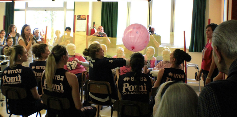Ma c’è stato prima spazio per la proiezione di un video pieno di fotografie simpatiche ed emozionanti che ricordano l’amicizia che lega queste due realtà e poi anche lo sport. Una selezione agguerrita di sei ospiti, capitanata da Costantina Aroldi allegra 96enne, hanno sfidato le rosa in una partita di volley seduto che ha visto tutte le giocatrici impegnate grazie al cambio di formazione fatta sul 4-3: la formazione di casa ha vinto il simpatico match e le ragazze della VBC si sono impegnate a tornare anche il prossimo anno per la rivincita.
