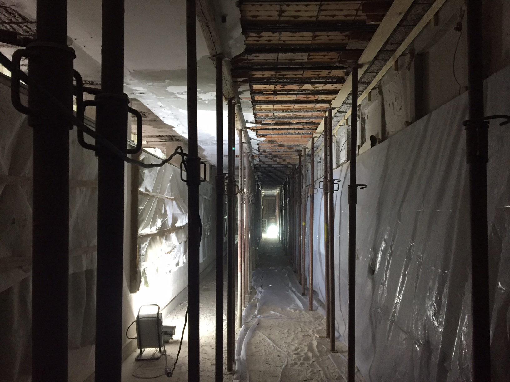 Il solaio di copertura del piano interrato del corpo A di questo grande complesso multipiano, costruito negli anni Settanta, ha subito, nel corso del tempo, costanti infiltrazioni dovute ad un irregolare e difficoltoso deflusso delle acque piovane. Tale situazione ha determinato un progressivo deterioramento della struttura del solaio stesso. Per garantire la sicurezza degli ambienti, in attesa dell’esecuzione dei lavori di risanamento, erano state provvisoriamente installate al piano interrato delle puntellature. Grazie alle opere in corso sarà garantita la sicurezza delle strutture e il miglioramento dello stato di conservazione dei manufatti architettonici.