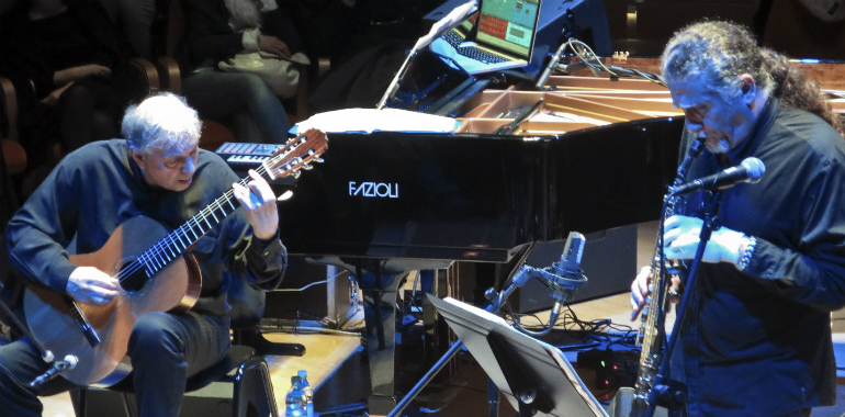 La serata si è accesa sulle note dei brani scritti da Girotto, come Gatos che – spiega l’artista- «è un omaggio sia ai meravigliosi animali, sia al felino per eccellenza ossia Gato Barbieri». Fra un pezzo che ripercorre le Origini e i Racconti in fuga, il sassofonista ha posato lo strumento per dialogare con il pubblico, passando da una battuta ironica su Bach a un plauso all’acustica della sala.