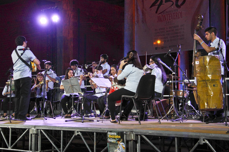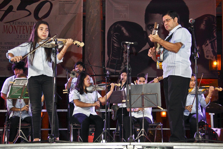 Il gruppo sta girando il mondo, come testimoni dell’Unicef, proponendo la loro musica semplice e coinvolgente e sono arrivati a Cremona, capitale della musica, per la loro prima tappa italiana. C’erano almeno settecento persone ad ascoltarli e applaudirli, gente di tutte le età che ha accolto il gruppo con entusiasmo ascoltato il loro messaggio sociale proveniente da un’area tra le più povere del continente latino-americano.